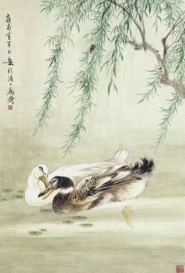 黄幻吾《柳塘双鸭》2014年上海明轩 秋拍拍品