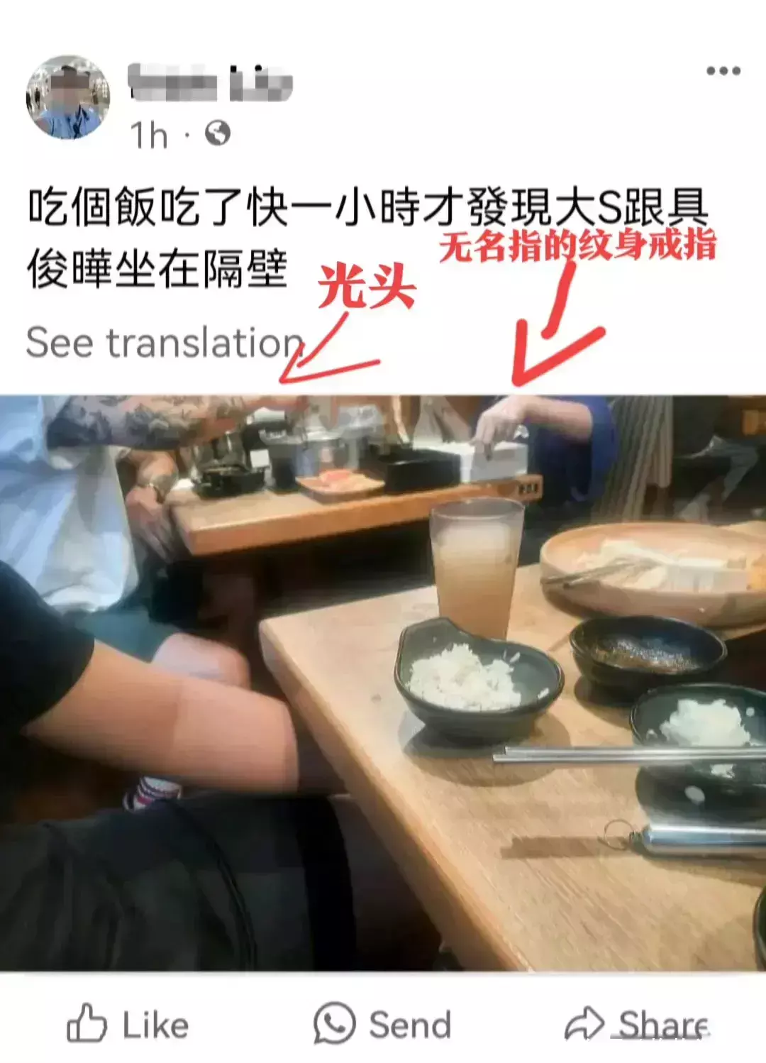 昨天有路东谈主晒出具俊晔和大S在台北餐厅吃饭的像片,诚然莫得拍正脸,然则两东谈主身上的纹身和具俊晔衣裳的衣服,未必对的上。